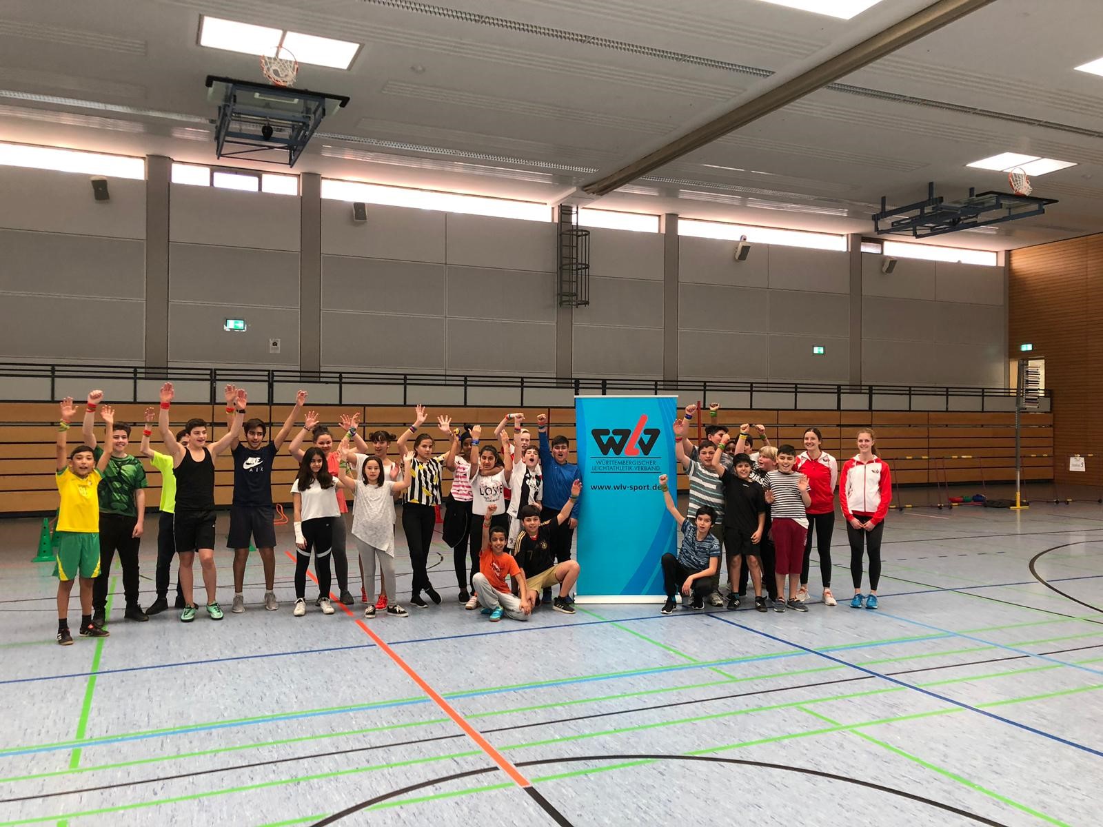 Am Dienstag, 19. März war in der Sporthalle der Amorbachschule in Neckarsulm mächtig was los. Das WLV-Team um Projektleiter Markus Reichle ist an diesem Vormittag vollgepacktem Auto zur Gesamtschule gekommen, um mit Unterstützung der Klassenstufe neun insgesamt sechs Bewegungsstationen zum Laufen, Springen und Werfen aufzubauen. Rund 100 Jugendliche der Klassenstufe fünf und sechs lauschten voller Vorfreude der Begrüßung von Markus Reichle und seinem Team und machten große Augen, als Top-Athlet Rene Stauß als 8.000 Punkte Zehnkämpfer vorgestellt wurde, der sodann auch das gemeinsame Aufwärmprogramm zu fetziger Musik gestaltet hat.